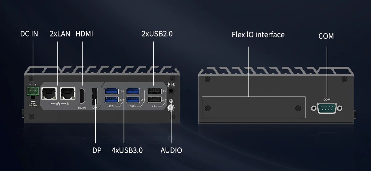 JEC-3511配備多樣化接口,滿足工業(yè)現(xiàn)場多元接入需求,提供多達6個USB接口(4xUSB3.0 + 2xUSB2.0)、2個千兆LAN口、HDMI+DP雙顯,同時支持 1個RS485串口(最多可擴展至6個串口),并預留后IO擴展擋片位,便于用戶定制拓展。