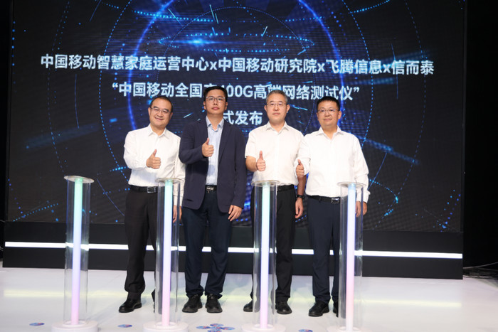 本次聯(lián)合發(fā)布儀式上,信而泰董事長李占有先生作為代表之一,與合作伙伴的多位領導共同出席了發(fā)布環(huán)節(jié)。出席嘉賓包括:中移(杭州)信息技術有限公司集團首席專家、家庭算力及安全產(chǎn)品部總經(jīng)理路曉明先生,中國移動通信有限公司研究院測試中心副總經(jīng)理楊?∠壬约帮w騰信息技術有限公司副總裁王亞松先生。各方領導共同手觸啟動屏,在全場倒計時中見證了這款國產(chǎn)高端測試儀表的正式發(fā)布。