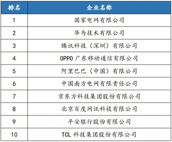 中國企業(yè)專利創(chuàng)新百強榜TOP10