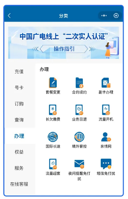 中國廣電 App:進(jìn)入 App 后,在“辦理”板塊找到“短信免打擾”入口。