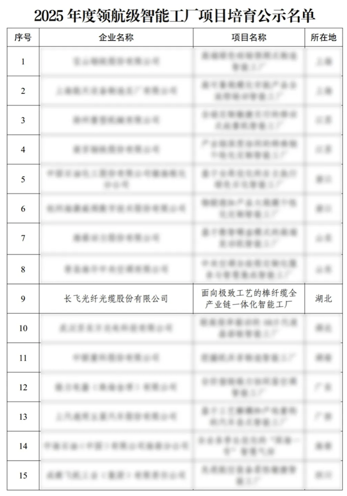 行業(yè)唯一!長飛公司入選工信部首批領(lǐng)航級智能工廠項目培育名單