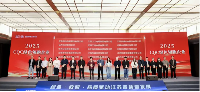 大會(huì)期間,亨通光電榮獲中國(guó)質(zhì)量認(rèn)證中心頒發(fā)的“CQC 2025綠色領(lǐng)跑企業(yè)”。