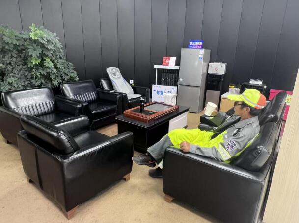 走進營業(yè)廳的 “愛心驛站”,溫暖的氛圍撲面而來:飲用水、充電插座、急救包、休息座椅、報刊讀物等物資一應俱全。環(huán)衛(wèi)工人、出租車司機、快遞員等戶外勞動者可以到這里喝杯熱水、歇歇腳,再投入一天忙碌的工作。