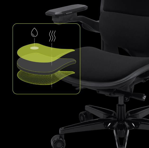 針對(duì)傳統(tǒng)電競(jìng)椅久坐悶熱痛點(diǎn),MAG A10采用ERGO-COOL透氣系統(tǒng):