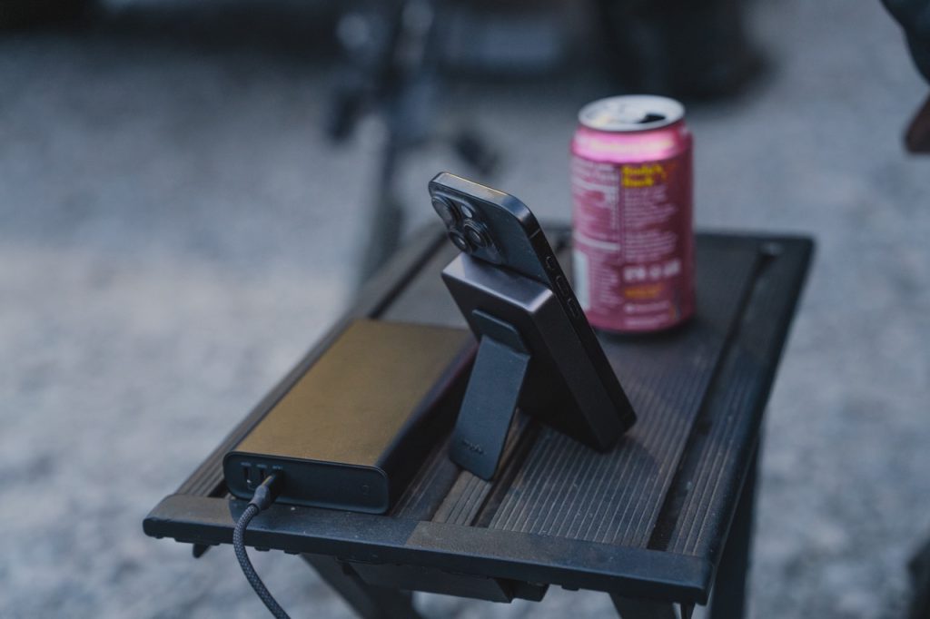 Powerstation 無(wú)線 10K 內(nèi)置 10000mAh 容量電池,支持 15W 無(wú)線充電,還支持 USB-C PD 有線快充,最高輸出功率可達(dá) 30W。支架系列則配備可 180 度旋轉(zhuǎn)的支架,在充電時(shí)可將 iPhone 豎放或橫放,方便觀看視頻或視頻通話。
