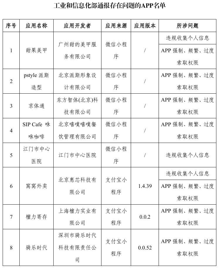 飛象網(wǎng)訊(致新/文)9月19日消息,工信部對(duì)APP違法違規(guī)收集使用個(gè)人信息等問(wèn)題開(kāi)展治理。近期,經(jīng)組織第三方檢測(cè)機(jī)構(gòu)進(jìn)行抽查,共發(fā)現(xiàn)29款A(yù)PP存在侵害用戶(hù)權(quán)益行為(詳見(jiàn)附件),現(xiàn)予以通報(bào)。