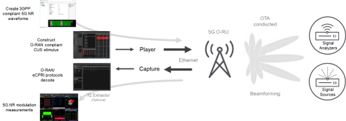 由于涉及大量參數(shù),創(chuàng)建符合5G標準的測試矢量是一項復雜的任務。 更為棘手的是,這些測試刺激信號需要以同步方式從DU上的以太網(wǎng)接口、非標準化時域IQ接口或射頻接口發(fā)送,以完成完整的無線測試。