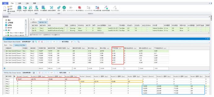 啟動Qbv流量后,測試儀將在設(shè)定的基準時間到達后開始發(fā)送流量。通過查看測試儀提供的詳細統(tǒng)計信息,可進行如下分析: