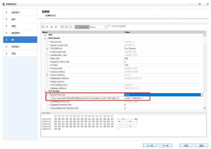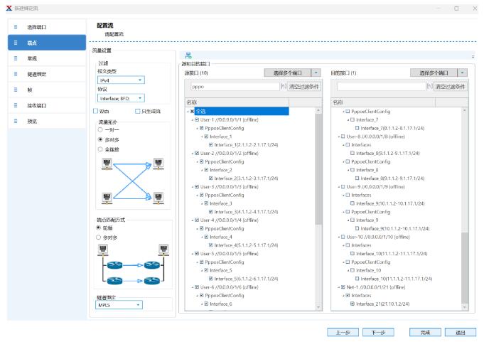 創(chuàng)建用戶側到網絡側的上行流量,添加UDP/TCP頭,設置源端口跳變,使每個用戶打滿端口塊,實現最大并發(fā)session數測試: