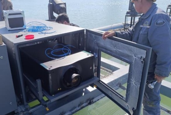 作為本次水幕秀投影系統(tǒng)的集成商,北京中清未來科技在Crimson WU32投影機的規(guī)劃、安裝和調試過程中發(fā)揮了關鍵作用。這些安裝在湖心浮排上的投影機面臨著大量水霧和濕氣的挑戰(zhàn)。為此,項目團隊為其定制了配備恒溫與冷卻系統(tǒng)的防水外殼,有效調節(jié)內部溫濕度,使其免受環(huán)境侵蝕,確保在各種天氣條件下穩(wěn)定運行。