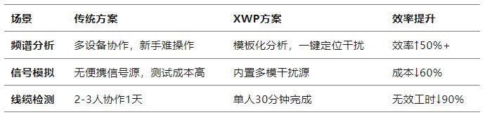 工具繁重低效:傳統(tǒng)測試需攜帶頻譜儀、信號源、線纜儀等多臺設(shè)備,移動性差;