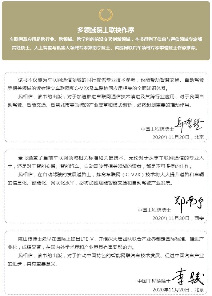本書是陳山枝博士及其團(tuán)隊(duì)近十年來(lái)致力于蜂窩車聯(lián)網(wǎng)(C-V2X)基礎(chǔ)理論研究與技術(shù)創(chuàng)新的成果總結(jié),是國(guó)內(nèi)外首本專門介紹C-V2X車聯(lián)網(wǎng)技術(shù)的專著, 包括LTE-V2X和NR-V2X的網(wǎng)絡(luò)架構(gòu)和關(guān)鍵技術(shù),以及C-V2X應(yīng)用相關(guān)關(guān)鍵技術(shù)、車聯(lián)網(wǎng)安全、頻譜規(guī)劃、產(chǎn)業(yè)發(fā)展與應(yīng)用示范、未來(lái)應(yīng)用和技術(shù)發(fā)展展望。