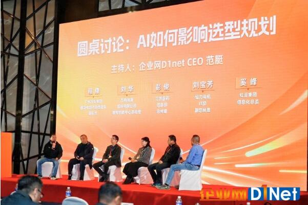 嘉賓分享之后,以“AI如何影響選型規(guī)劃”為主題的圓桌討論正式開始。討論由企業(yè)網(wǎng)D1net CEO范脡主持,國機集團、廣州汽車集團、江蘇醫(yī)藥、恒力電機、紅豆集團等企業(yè)的信息部高管參與了討論。