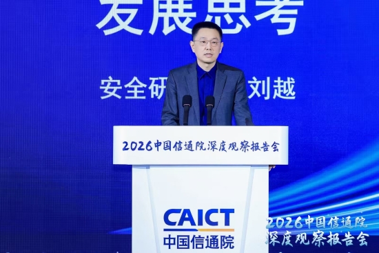 飛象網(wǎng)訊 12月13日,在“2026中國(guó)信通院深度觀察報(bào)告會(huì)”上,中國(guó)信息通信研究院安全研究所副所長(zhǎng)劉越表示:“當(dāng)前,世界百年變局加速演進(jìn),AI技術(shù)為代表的新一代科技革命與產(chǎn)業(yè)變革加速突破,大國(guó)博弈更加復(fù)雜激烈,網(wǎng)絡(luò)安全產(chǎn)業(yè)面臨新的機(jī)遇和挑戰(zhàn),承擔(dān)了更加重要的使命與責(zé)任!