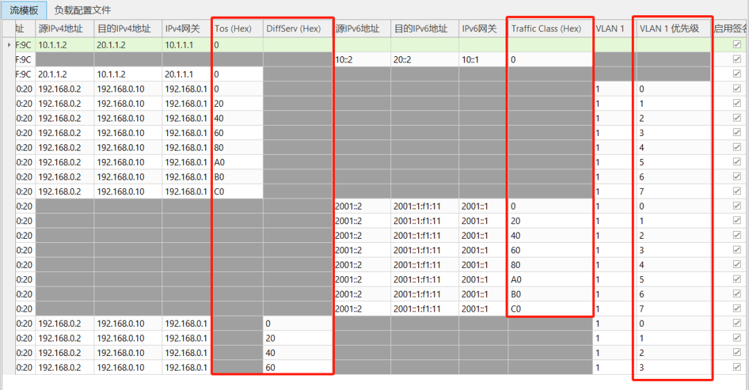 流量能力:支持發(fā)送固定幀長(zhǎng)和iMIX混合幀長(zhǎng)流量,同時(shí)支持VLAN/IPv4/IPv6/MPLS等多種優(yōu)先級(jí)標(biāo)記,提供細(xì)粒度的VPN級(jí)性能統(tǒng)計(jì)。