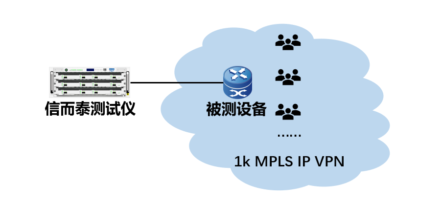 搭建簡(jiǎn)化的測(cè)試場(chǎng)景,在一對(duì)端口上模擬測(cè)試1000個(gè)MPLS IP VPN,每VPN通告100條VPNv4路由,并震蕩其中10%路由。發(fā)送iMIX流量驗(yàn)證VPN轉(zhuǎn)發(fā)能力。