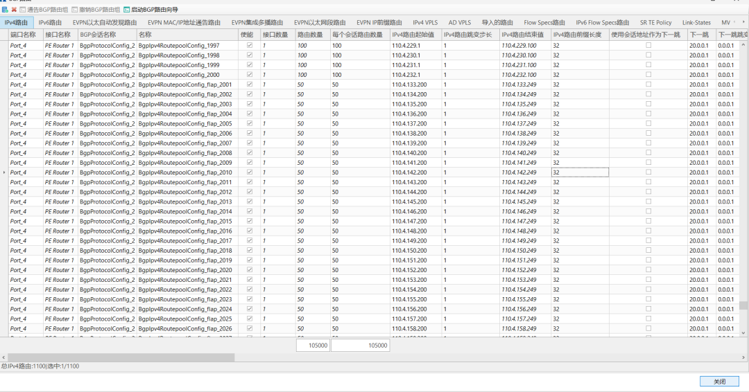 Step-5.設(shè)置PE側(cè)每VPN通告100條私網(wǎng)路由,即可完成向?qū)В?/P>