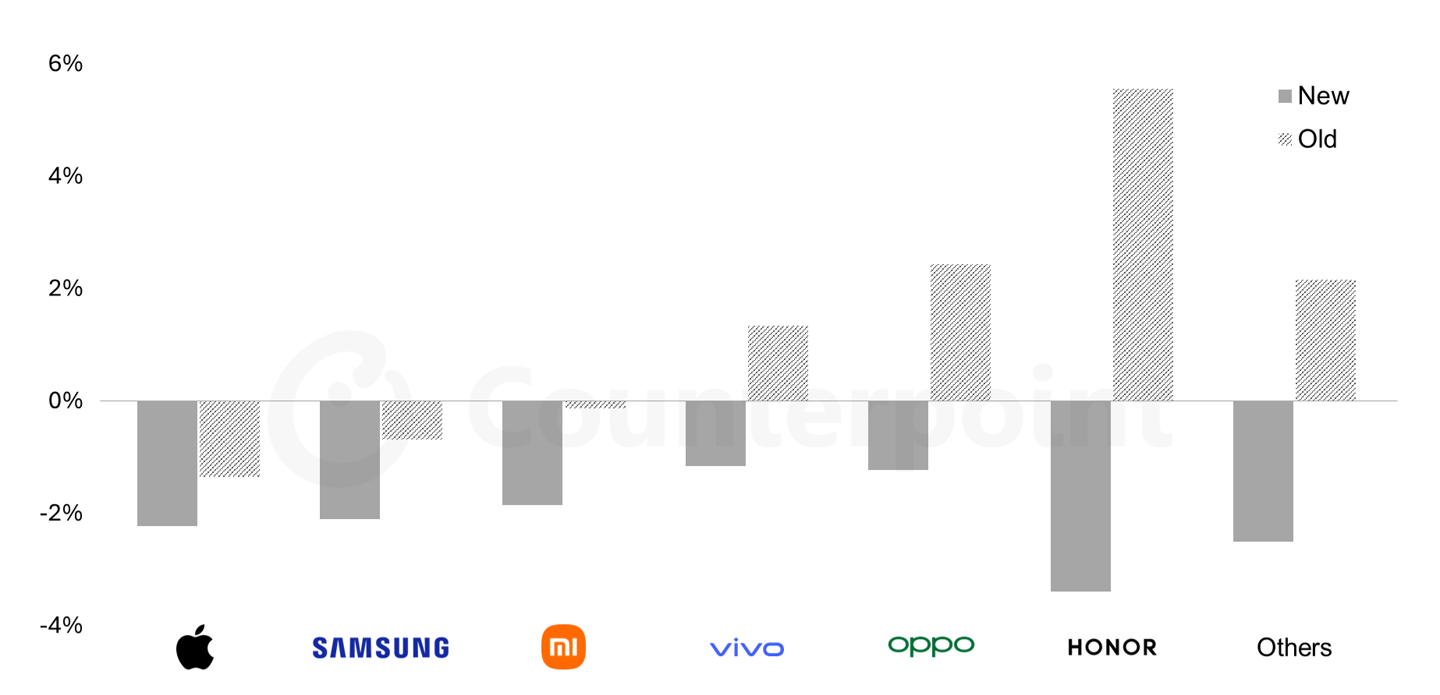 Counterpoint 指出,內存芯片短缺對智能手機市場的沖擊將呈現(xiàn)結構性差異,其中榮耀、OPPO 等中國品牌因利潤率較低,抗風險能力相對更弱,中低端入門機型受到的影響尤為顯著。