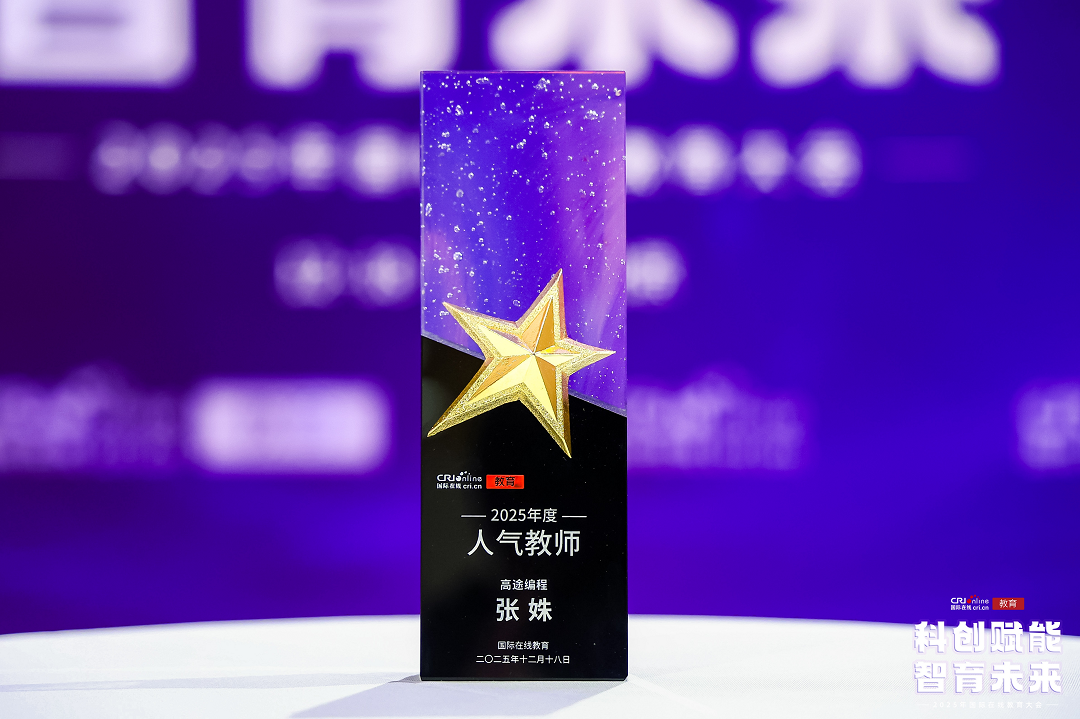 2025年12月18日,由中央廣播電視總臺(tái)國(guó)際在線主辦的“2025年度國(guó)際在線教育大會(huì)暨頒獎(jiǎng)典禮”在北京圓滿(mǎn)落幕。作為中央媒體打造的權(quán)威教育盛會(huì),大會(huì)以“科創(chuàng)賦能 智育未來(lái)”為核心主題,匯聚教育領(lǐng)域領(lǐng)導(dǎo)、專(zhuān)家學(xué)者及行業(yè)領(lǐng)軍者,聚焦AI時(shí)代教育數(shù)字化轉(zhuǎn)型,表彰推動(dòng)教育創(chuàng)新的標(biāo)桿人物與機(jī)構(gòu)。高途編程資深主講張姝憑借扎實(shí)的專(zhuān)業(yè)功底、豐富的教學(xué)經(jīng)驗(yàn)及良好的用戶(hù)口碑,從眾多參評(píng)教師中脫穎而出,斬獲“2025年度人氣教師”榮譽(yù)稱(chēng)號(hào),成為編程教育領(lǐng)域的實(shí)力典范。