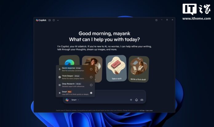 微軟面向 Windows 11(以及 Windows 10)的 Copilot 應(yīng)用程序現(xiàn)在支持由 GPT-5 驅(qū)動(dòng)的智能模式。這一功能自 8 月 7 日開始逐步推出,目前在美國(guó)及其他地區(qū)已廣泛可用。