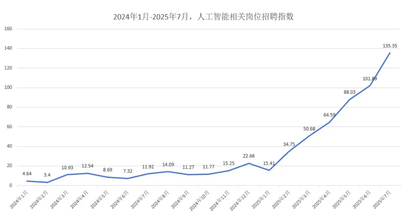 2025 年下半年以來,AI 行業(yè)的人才爭奪戰(zhàn)已進(jìn)入白熱化階段。職場社交招聘平臺脈脈 8 月 19 日發(fā)布的統(tǒng)計(jì)數(shù)據(jù),用一組組飆升的數(shù)字,直觀揭示了這場 “搶人潮” 的激烈程度 —— 崗位量暴漲、薪資水漲船高、從業(yè)者跳槽意愿強(qiáng)烈,全行業(yè)對 AI 人才的渴求已突破技術(shù)領(lǐng)域,蔓延至多個(gè)崗位維度。