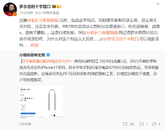 羅永浩談蘋果手機掛繩賣479元:蘋果有權這么做,但割粉絲韭菜很惡心,臭不要臉