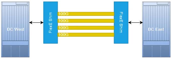大型云服務(wù)商和互聯(lián)網(wǎng)公司擁有多個(gè)地理分散的數(shù)據(jù)中心,在這些數(shù)據(jù)中心之間需要支持虛擬機(jī)遷移、海量數(shù)據(jù)備份、分布式服務(wù)等功能。這些功能都需巨大的帶寬提供支持。使用FlexE 技術(shù),通過(guò)對(duì)物理鏈路的綁定,實(shí)現(xiàn)了數(shù)據(jù)中心鏈路擴(kuò)容的平滑升級(jí)。